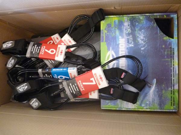 うちのボードはアウトラインやサイズなど、どれも個性的なのでケースもリーシュも個性的な形とサイズです。