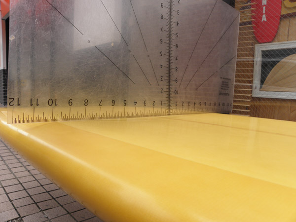 TIKIは、以前のブログでご紹介したように、サイドフィンというオプションが付いているので、それに合わせてテールまわりにVEEとロッカーを加えてあります(シングルのPRIMOと比べてのお話しです)