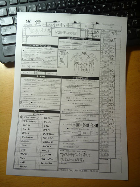AXXE CLASSICさんに、3ミリのフルスーツをお願いしました。これから冬本番までと、春先用の一番出番が多いウェットです。