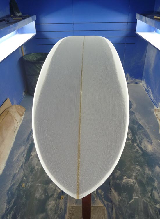 使っているフォームは8.4のプリモと同じものですが、サイドフィンが付くので、TIKIはテールのロッカーとアウトラインを調整します。
