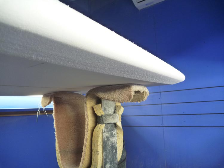 レールを作成中です。レールのトップにはボードのアウトライン全体に渡って、エッジを付けます。このレールとボトムのコンケーブがスピードの秘密。もうプリモでたっぷり分かっていることですが…。