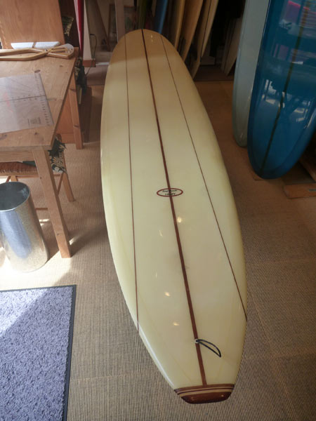 川南 活さんにシェイプしていただいたロングボード。現在、気に入って使っているログです。もともとはロングボードでサーフィンを始め、クラシックボードの全盛期も通過してきています。結構な本数のロングボードを所有して、乗ってきたと思います。