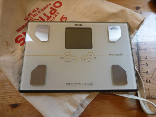 測り方はコレ 笑。タニタの体重計を自宅から持ってきました。