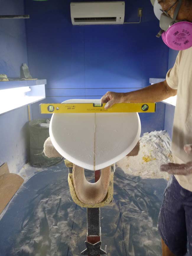 活さんは一本、一本、時間をかけてシェイプしています。先日仕上がったニーボードですが、少しだけ修正を加えました。乗り手の意向を伝える私も責任大きいです。