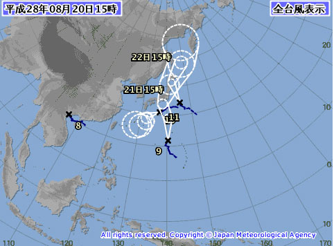 さて、気になる台風ですが、9,10,11号とややこしいことになっています。