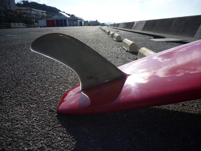 でもこのボードを含めて、さらに(かなり)大きくテールより後方へはみ出したフィンのヴィンテージのロングボードなどに乗っているうちに、ただ重くなるだけではないのではないか?と考えるようになりました。