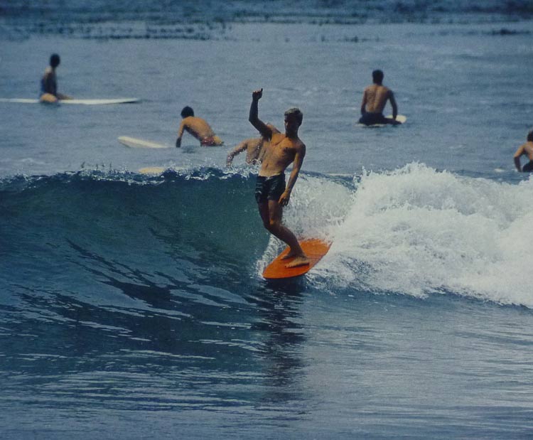 そのなかで、一人頑張っていたのは、ランス・カーソン。70年代初めのサーフィン映画の中で、皆がショートボードに乗っているマリブでノーズライドを決めている映像が残っています。