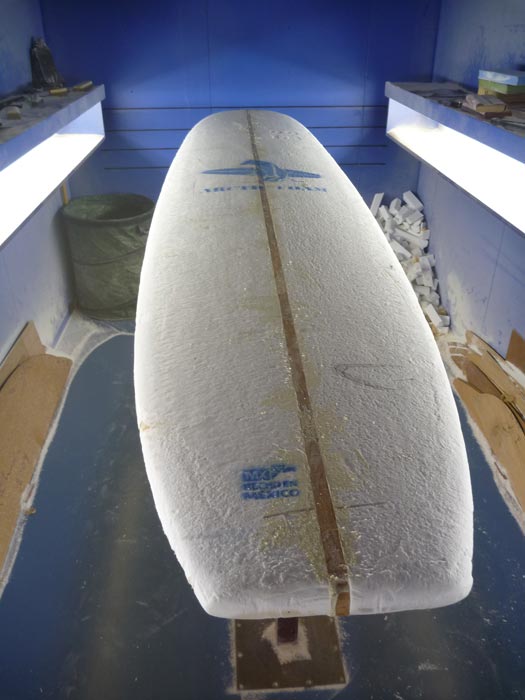 新しいロングボードのブランクスです。ストリンガー太いですが、それよりも目につくのはロッカー。か~なり平らです。これが欲しかったのです。