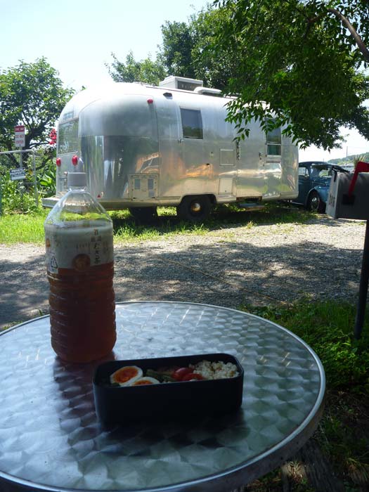 早速カツさんが皮むきしてくれるというので、私は風通しの良い木陰でランチ。