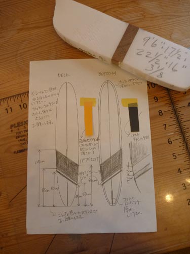 こーんな指示で、仕上がりがどうなるか?プロセスを見ていただければと思っています。サーフボードを作るのは楽しいものです。