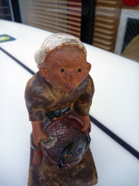 そんな中で妙に気になる焼き物の人形を見つけました。信楽焼の小さな人形です(タヌキではありません)。顔をじっと見て、全体の色と大きさを見て、これは自宅のテレビ台の上に置いたら、なんだか面白そうだぞ…。