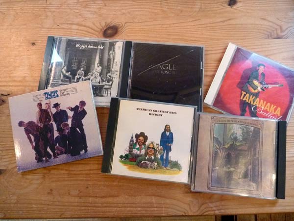 今日は、BYRDS(たくさん持ってます)、AMERICA、JACKSON BROWN、EAGLESは中学生の頃によく聞いてたやつ。THE FIFTH AVENUE BANDはかなりマニアックだと思います。それに高中正義のバラッド(夏の夜の海で聞くといいです)