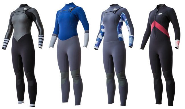 女性サーファーには4人のアーチストがデザインした、おしゃれなウェットスーツ。発売以来、かなり好評らしいです(らしい、と言うのはうちはレディス少ないので…)