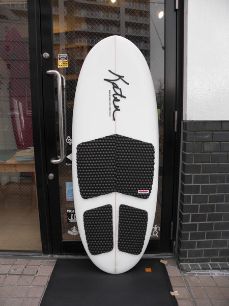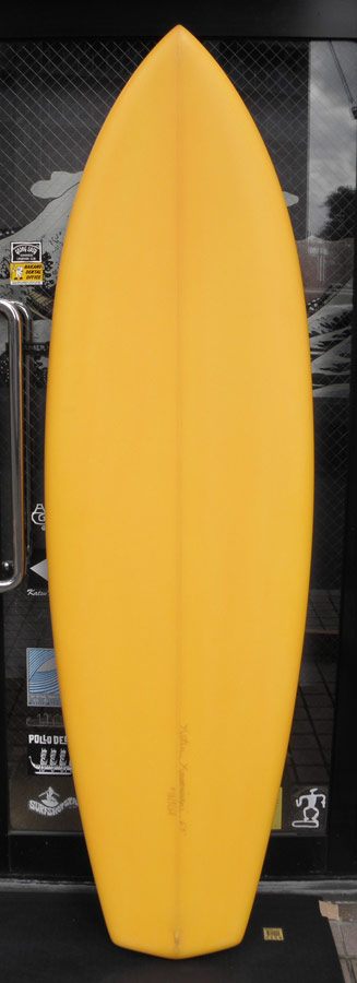 活さんのフィッシュのラインアップには、いわゆるサンディエゴフィッシュと呼ばれる形のフィッシュはありません。KK FISHは調子のいいフィッシュですが、実はこのボードも70年代のリノのツインフィン、つまりBOOGIEを完成させようという過程から生まれてきたものです。