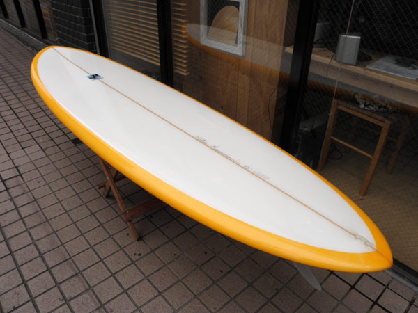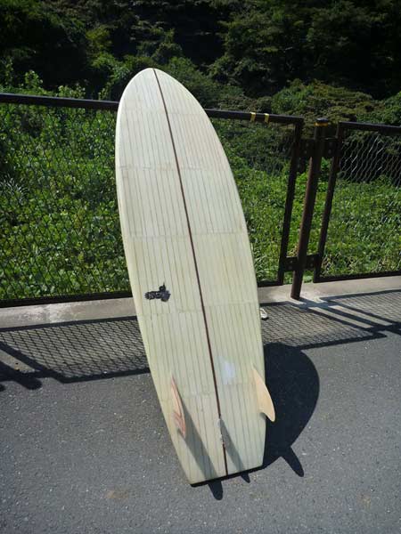 以前作った(もう5年前)、8フィートのプリモと違う点は厚めに作ってもらった点です。基本私はロングボードはログなので、ボリュームがあるボードの方がグライド感やコントロールする感じが近いのかもです。