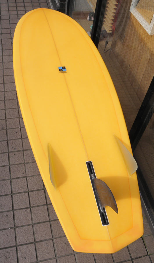 8’4”のプリモは、ロングボーダー向けのミッドレングスだと思います。普段シングルに乗っている人がログではちょっと大変、というときに使うと面白いと思います。もっと動かしたいという人にはサイドフィンを付けちゃいます(シェイプも変わります)