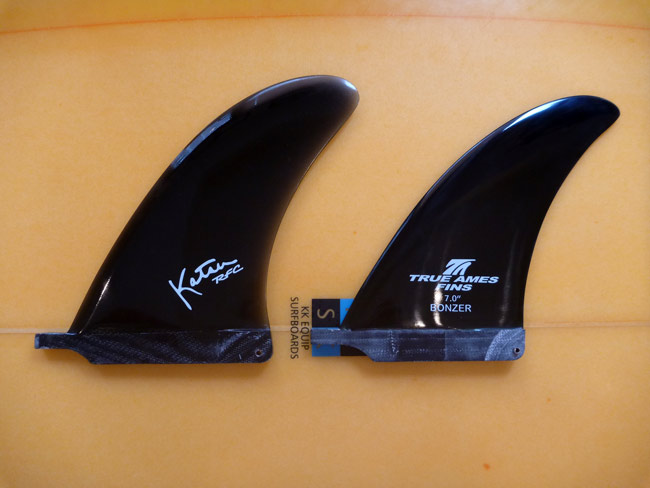上の写真のフィンのサイズはどちらも、7インチです。正直なところ、いままでボンザーのセンターフィンは深く考えずこのサイズを使っていました。