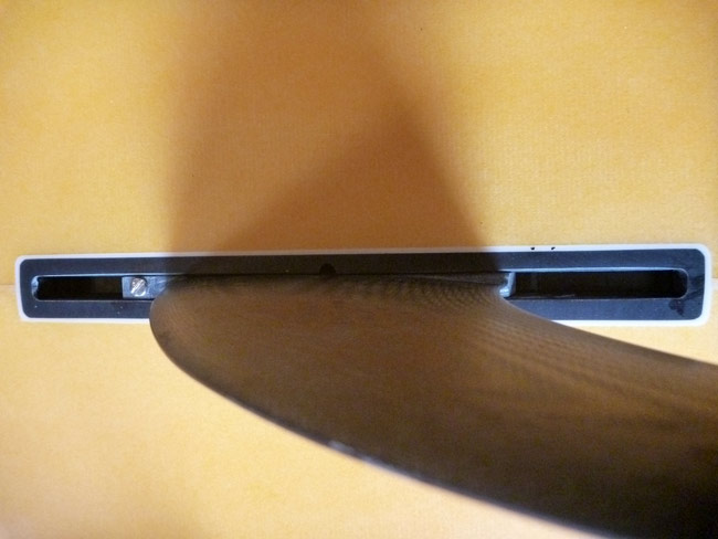 フィンも変えてみました。2+1かトライかで迷っているときにテスト用に買ったプロコアの硬くて軽いフィンです。試行錯誤していたときとは違って、今度はトライでフィンの位置も決まっています。