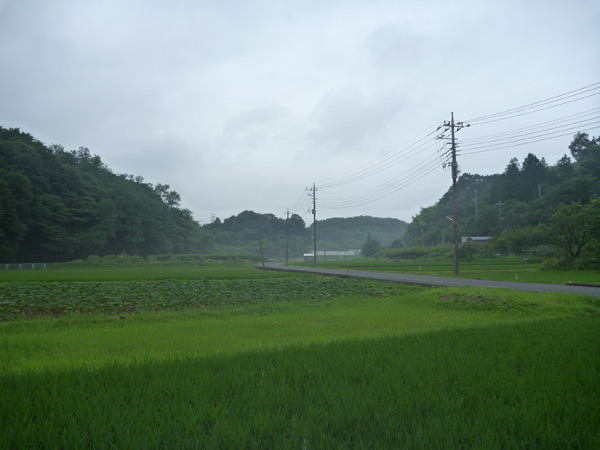 田んぼは霧雨に煙っています。シトシト雨降る梅雨は嫌いな人が多いですが(私は結構好き)稲の成長には大切です。梅雨がなければ美味しいお米も食べられないんです。