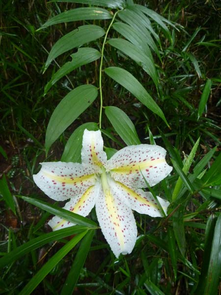トレイルの脇には見事な山百合が。芽が出て花が咲くまで5年もかかるそうです。ユリが咲き始めるともう夏です。