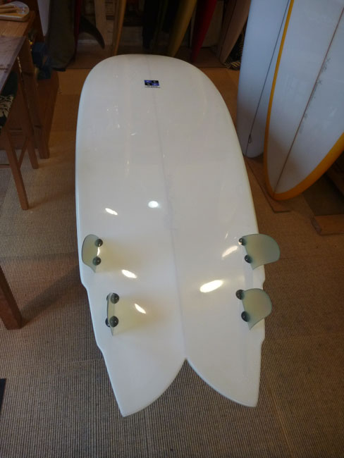 カツさんのクアッドフィッシュのユーズドボードが入荷しました。かなりきれいです。長さは5’11”。雨が止んだら写真撮ってアップします。しばらくお待ちください。