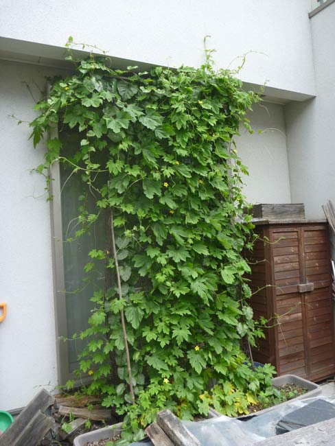 今年の緑のカーテンはたぶん過去最強の出来。あるのと無いのではずいぶん違います。