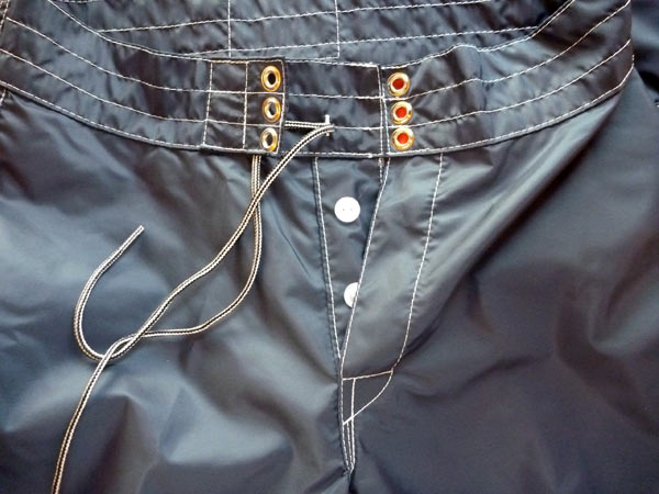 これまでベルクロテープだった部分がボタンフライになりました。これでウェストのヒモがくっつき解消です。