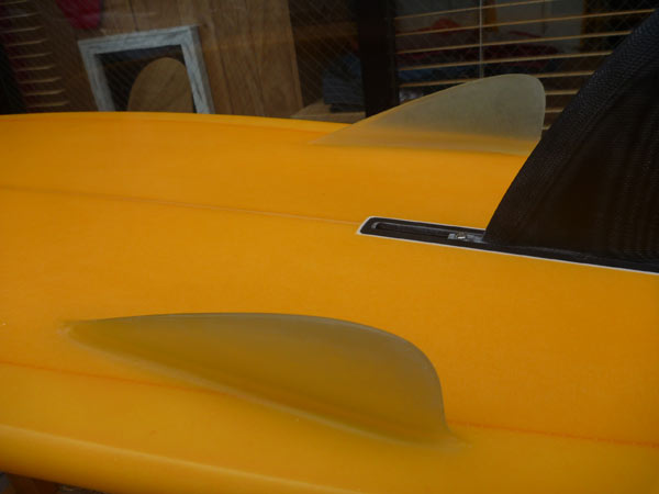 オレンジが上の写真のセンターフィン。センターフィンの位置を前に持って来たくて、クリアのフィンは後から作ってもらったんですね。