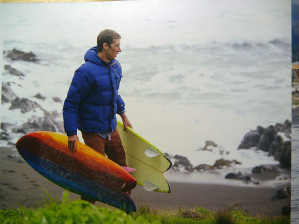 届いたばかりのサーファージャーナル日本語版に出ていた写真です。フィッシュを両手に持った、ライアン・バーチですが、アウトラインに注目です。