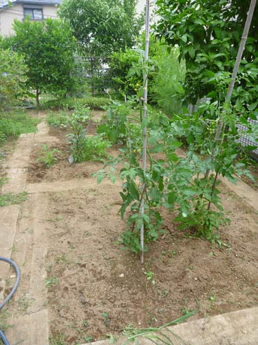 今朝は畑仕事と庭仕事。この時期はちょっとほっておくと雑草で大変なことになってしまうので、大変になりすぎる前に草むしりと、植えている作物たちを成長に合わせて仕立て直しします。