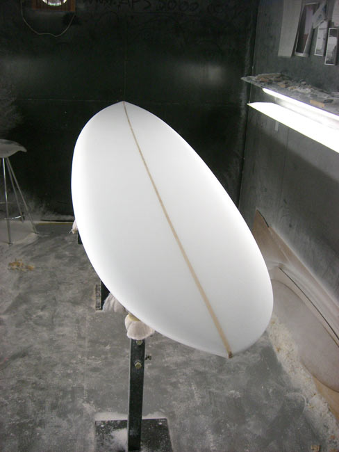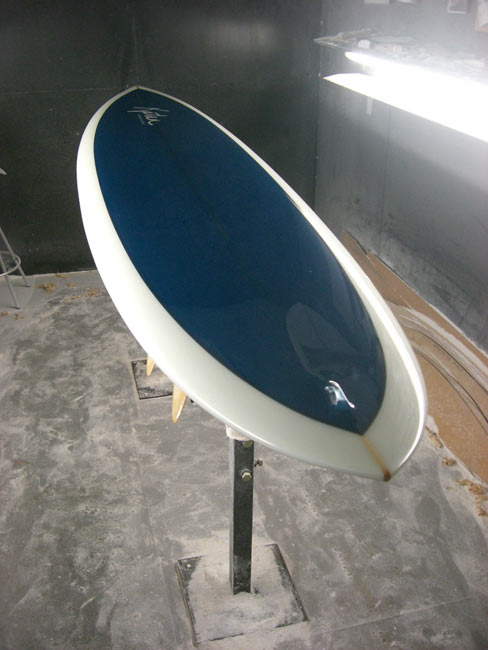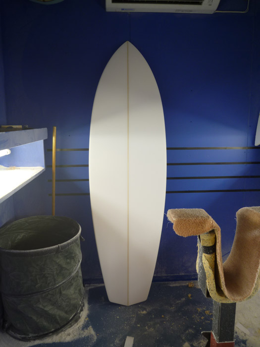 このボード、ブログをいつも読んでいただいている方は、以前にも見た記憶があると思います。ちょうど3年前に作ったこのシングルフィンと同じシェイプです。