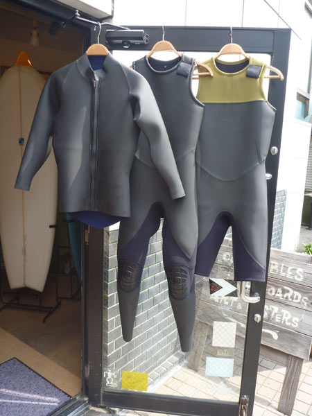 ラバー軍団も到着しました。オーダーいただいていた、ロングジョンにショートジョン、2ミリのタッパージャケットです。夏のウェットの準備はいまのうちにどーぞ。