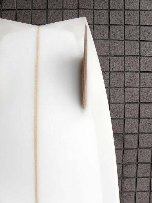 レールはテールからノーズまでダウンレール。あんまり関係無さそうな、ノーズのレール形状も実は重要だということもテスト済みという研究熱心さです。