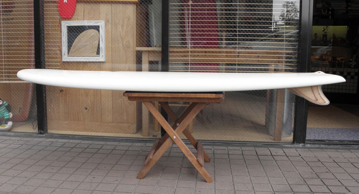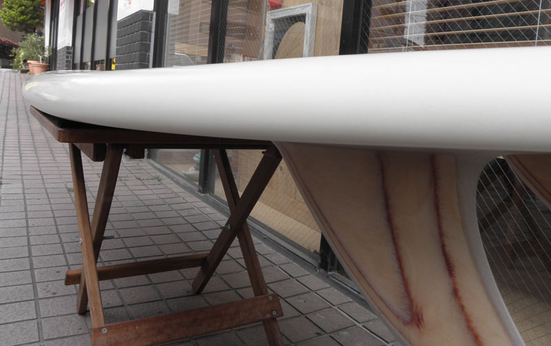 作ってもらったロングボードをベッドの上に置いてその上に腹ばいになって、テイクオフ!なんて立ち上がったら、出来上がったばかりのボードのデッキからパキッという音が聞こえて、あ、ヤバイ…なんてことをやっちゃっていた私でした。