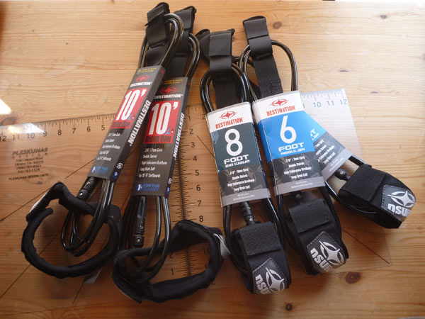 10’、8’、6’、数字はコードの長さ。波のサイズじゃありません。6フィートは足首用、ロングボード用は9フィートと10フィートのひざ下用です。