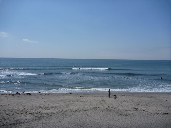 7時過ぎに海へ到着。波はスネ、ヒザ。
