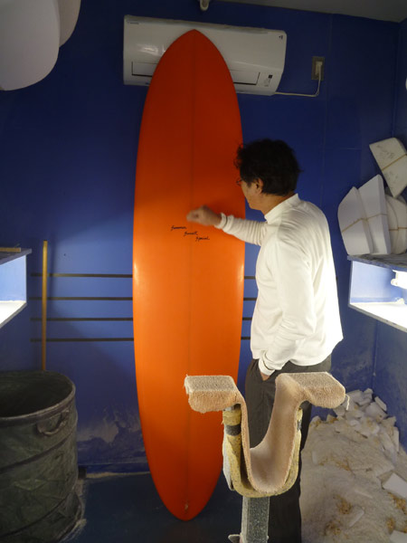 ショップのオープンは2001年。それ以来、ロングボードをベースに、フィッシュ、ボンザー、シングルフィン、ニーボード、パイポとさまざまな種類のサーフボードを作り、試してきました。