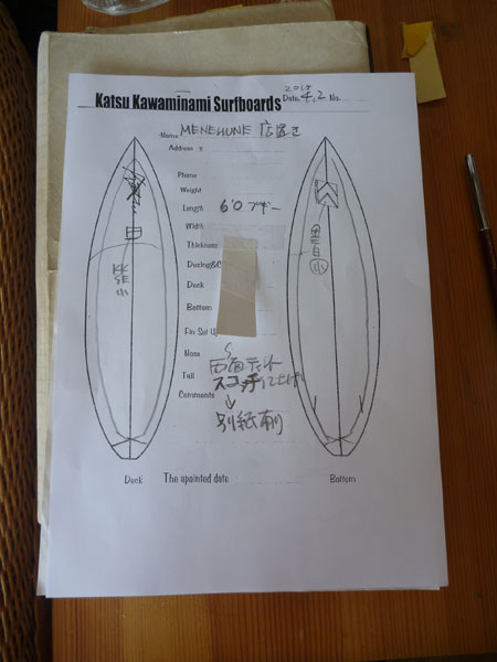 この話が自分の中にすんなりと入ってきて多いに納得できるのは、カツさんが教えてくれるシングルのシェイプのお話と言っていることが同じだからです。トライフィンのボードとのボリュームのバランスの違い、シングルフィンに必要なレールの厚さなどなど、シングルフィンの時代からのシェイパーならではのことだと思います。