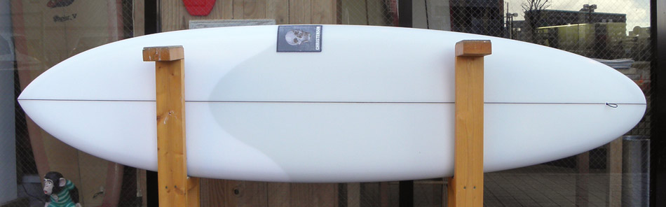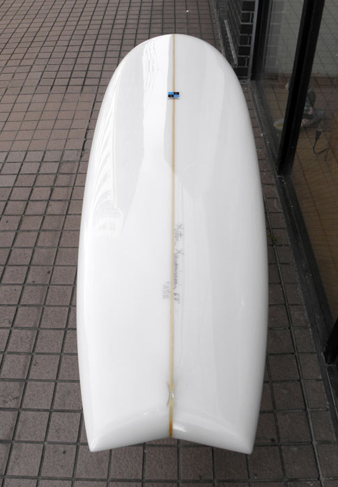 ルースで速くてとにかく楽しめるツインフィンです。ちょっとサイズがあるときの波のフェイスを突っ走るとまた格別の気持ちよさです。Iさんお楽しみに、ご期待ください。