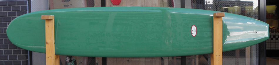 ハワイイなロングボードが2本やってきました。ユーズドボードです。普段自分が使っているロングボードのぽってりした雰囲気とは違ってレールもボトムも全体のボリュームもシャープな雰囲気です。