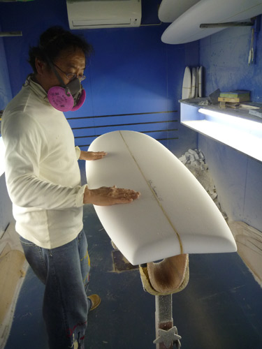 ショップのオープンは2001年。それ以来、ロングボードをベースに、フィッシュ、ボンザー、シングルフィン、ニーボード、パイポとさまざまな種類のサーフボードを作り、試してきました。