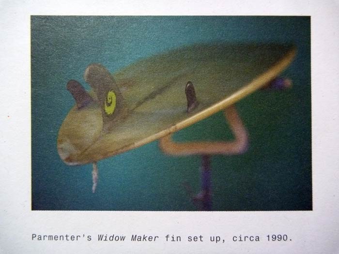 アンドリュー・キッドマンのロスト イン ザ エーテルから借りてきました。デイヴ・パーメンターがシェイプしたウィドウメーカーです。シングルフィンのような大き目のセンターフィンと小さなサイドフィンが付いた、いわゆるシングルスタビと呼ばれるセッティングです。