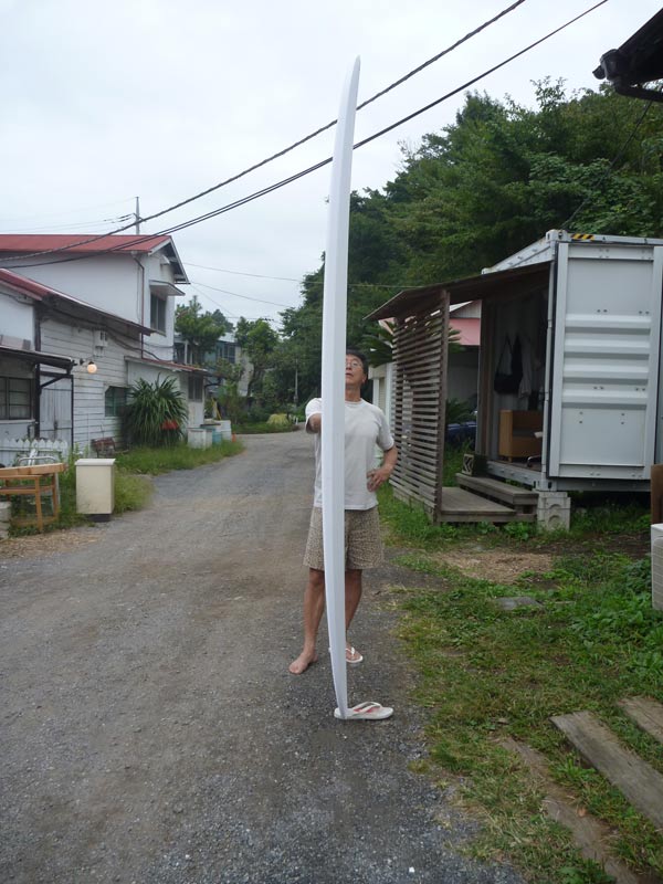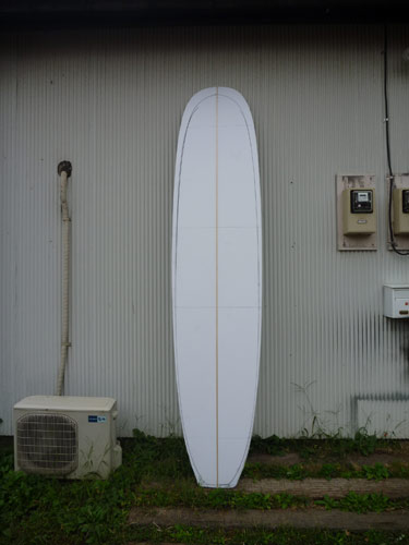 あらためて外へ出してアウトラインを見てみます。ノーズライダーではなく、クルーザーです(ノーズコンケーブは入れません)