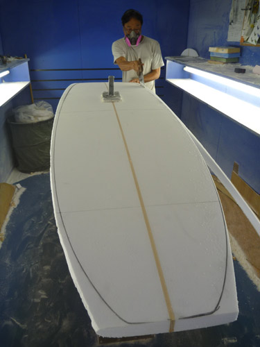 ショップのオープンは2001年。それ以来、ロングボードをベースに、フィッシュ、ボンザー、シングルフィン、ニーボード、パイポとさまざまな種類のサーフボードを作り、試してきました。