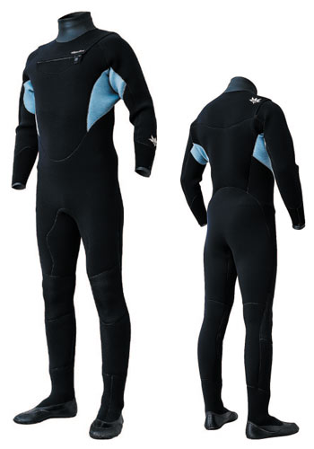 ZEROウェットスーツのエアドームというネックイン同様にドライに近いウェットスーツです。ネックインは首から脱ぎ着をするのですが、こちらはジッパーレスタイプで防水性を高めているタイプです。