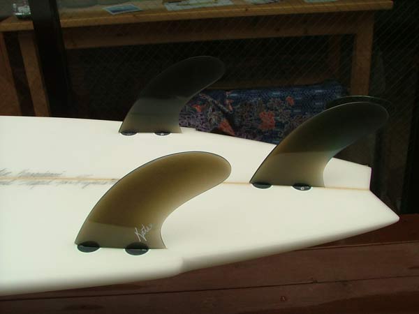 前回の台風ではシングルのプリモに乗っていましたが、あの波でトライフィンだったら、また違う波乗りになるなあーと考えていたらやってみたくなりました。