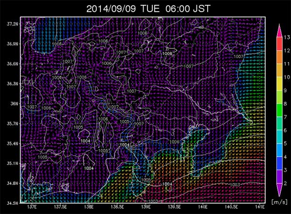 明日の朝には台風は抜けていきますが、沖のこの風。北東風がピューピューです。うねりが入らないのはこの風のせいか?前線も絡んでいるみたいです。