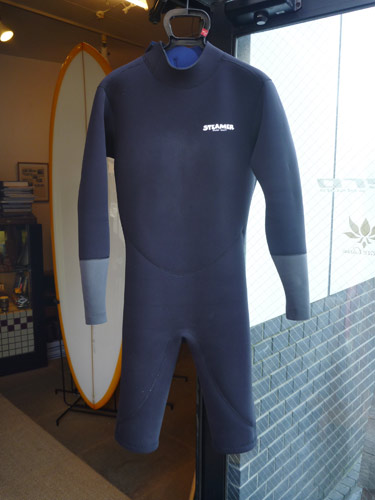 そして、派手さはありませんが良い素材を使ってベーシックに低価格にを目標にしたSTEAMERサーフスーツでは、このクラシックなセットアップが好評です。全身にぜいたくにネッスルラバーを使って、¥46.000(税別)です。3ミリフルスーツも同価格。もちろん日本製です。