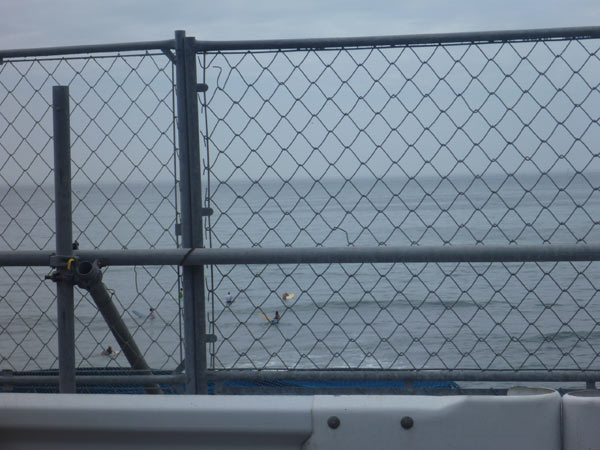 二人は沖へ出てくると、彼氏は彼女をチャネルに残して波が崩れている方へパドルしていきました。「おい、そこに彼女残していくか?」と思いつつ、しばらく見ていました。