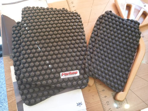 ニーボードをオーダーいただいた方のパッドが到着しました。スタンディング用のパッドと違って、ツブツブで厚みがあります。柔らかいのでトランクスで波乗りしても、ヒザは擦れません。でもしっかりグリップしてくれます。